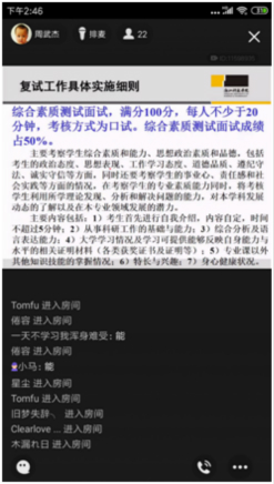 周武杰老师首先对研究生复试的流程做了解读,然后根据复试的每个环节给予了相应的建议。对于综合素质测试面试,周老师强调一定要准备充分,把时间用好,自己的个人成果也要梳理清楚经得起追问。对于外语听力和口语测试,周老师提醒同学们要抓住关键词,提早准备些常见问题的回答,要敢于表达。对于调剂系统,周老师强调一定要早填报,利用好名额,早做打算。马伟锋老师主要对复试的注意事项做了分享。嘱托学生一定要“形神兼备”。“形”强调要做好面试礼仪,材料准备齐全。“神”要有内容,有内涵,自己的项目和成果要有自己的思路和方法。联系导师注意要诚恳,材料要实事求是。最后两位老师还做了线上互动。同学们纷纷表示,收获很大。